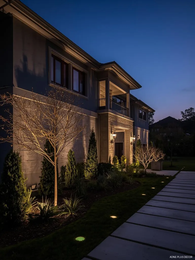 **"Outdoor Lighting Design: Extending Style Beyond the Walls"** "Don't let your home's elegance disappear after sunset. Our outdoor lighting services are designed to enhance your facade, highlight landscaping, and ensure safety, seamlessly extending your interior design aesthetic to the exterior spaces. We create custom lighting schemes that achieve the perfect balance of drama, ambiance, and functionality: * **Architectural Accentuation:** Strategically placed fixtures highlight your home’s key architectural features, facade textures, and unique elevation patterns. * **Path & Landscape Illumination:** We ensure safe navigation with stylish path lights, and use uplighting to bring trees, planters, and garden features to life. * **Ambiance & Security:** Custom-designed solutions provide comfortable illumination for patios, decks, and outdoor living areas, simultaneously increasing security with discreet, motion-activated options. Using durable, weather-resistant fixtures, we craft an inviting and spectacular nightly presence for your home."